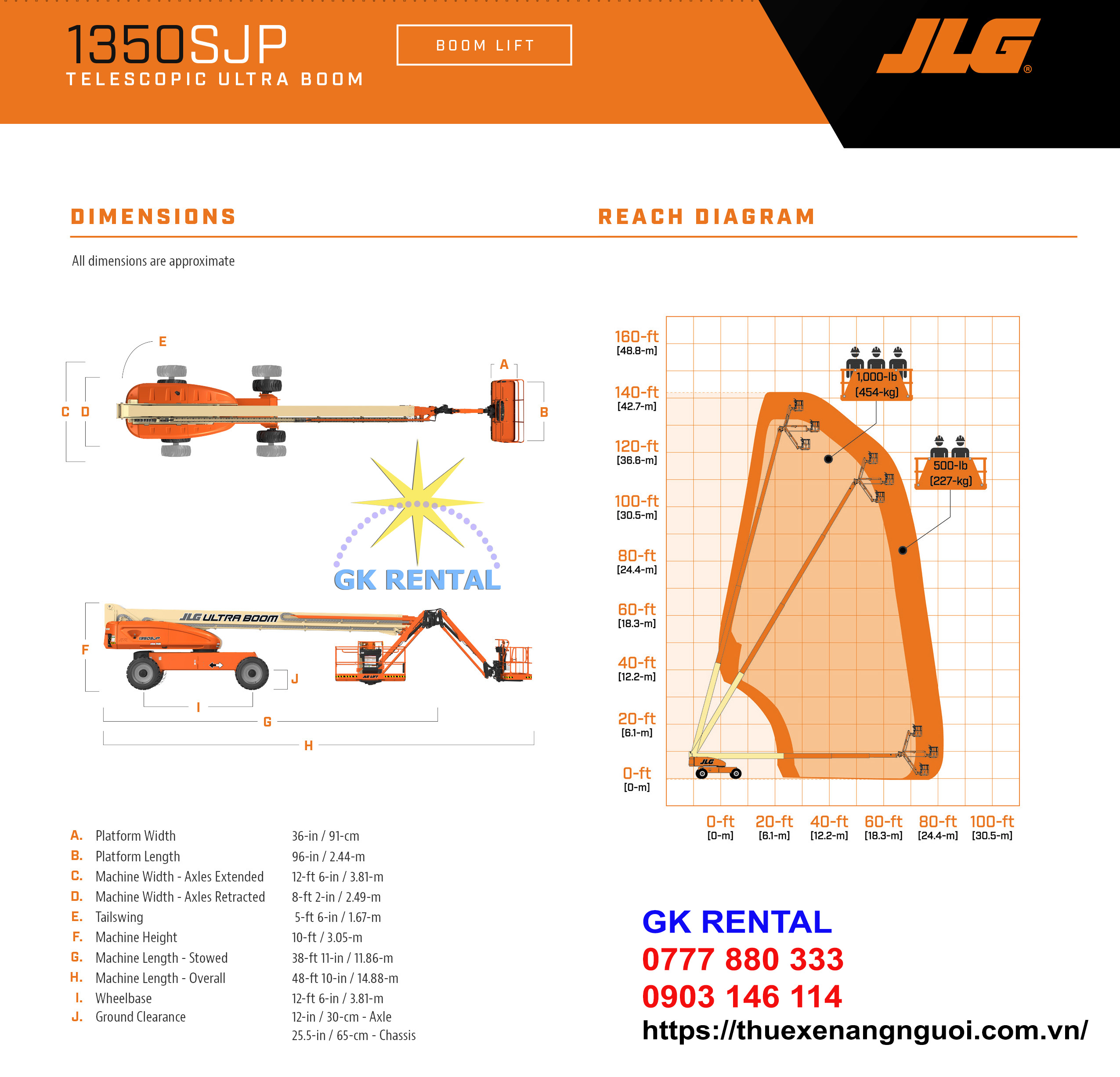 Thông tin và khả năng hoạt động xe nâng người JLG 1350SJP: